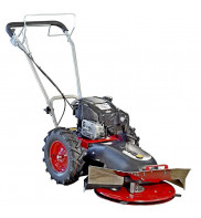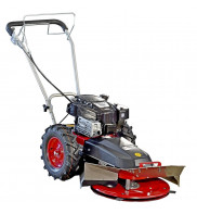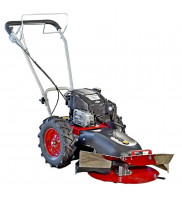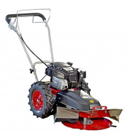 Stavebnicová bubnová sekačka s pojezdem, celoplošně krytý žací talíř o záběru 60 cm, max. výkon motoru KAWASAKI FJ 180 5,5 HP, dvě rychlosti vpřed.