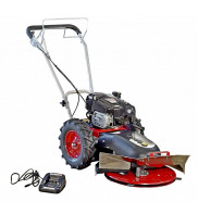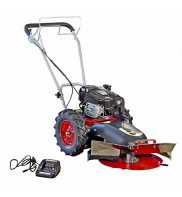 Stavebnicová bubnová sekačka s pojezdem, celoplošně krytý žací talíř o záběru 60 cm, max. výkon motoru Briggs&Stratton 5,5 HP, dvě rychlosti vpřed, elektrostart.