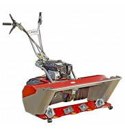 Stavebnicová čtyřdisková sekačka s hydrostatem a plynulou změnou rychlosti vpřed i vzad, motor 850 I/C o obsahu 190 ccm, výkon 6,5 Hp, litinová vložka válce, olejové čerpadlo a filtr. Záběr sečení 125 cm. Náprava s diferenciálem, automat. uzávěrkou a brzd.