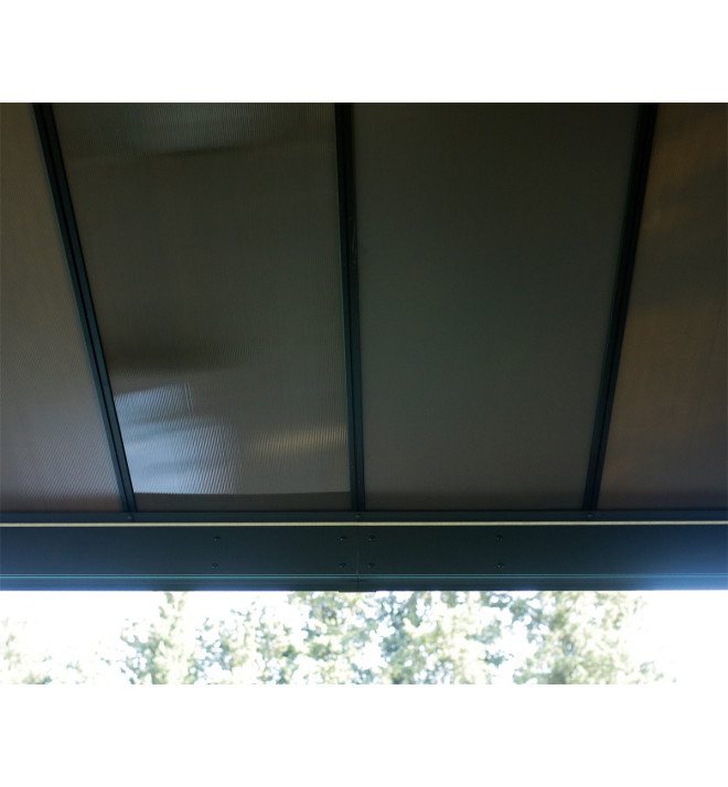 Velmi odolné střešní panely z 6 mm silného dvoukomůrkového polykarbonátu dokonale chrání před deštěm, sněhem i škodlivým UV zářením a jsou odolné vůči nárazu.