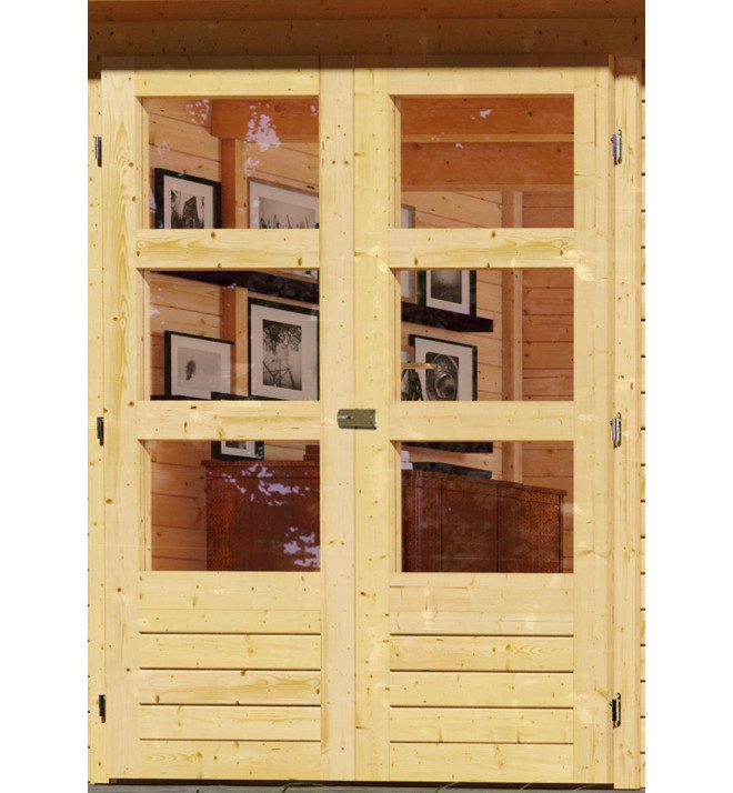 Přírodní dřevo - před montáží musí být všechny stavební díly ošetřeny hluboko působícím základním nátěrem a preventivním nátěrem proti zamodrání a plísni, a to z vnější i vnitřní strany dílců. Pro konečný nátěr použijte i ve vnitřním prostoru povětrnostně odolnou lazuru s dobrými fyzikálními vlastnostmi, která ochrání dřevo proti vlhkosti a slunečnímu záření. Lazura by měla být zároveň voděodpudivá, světlostálá a vlhkosti odolná. Dbejte na to, aby lazura měla dostatek barevného pigmentu, protože jinak by mohlo dojít k zešednutí dřeva. Nepoužívejte žádný lak! Nechte si podrobně poradit od odborného prodejce barev, co se týká ochrany přírodního jehličnatého dřeva a dodržujte pracovní postup výrobce nátěrové hmoty. Další nátěr provádějte po dokonalém zaschnutí a vyvětrání. Důkladnou ochranou dřeva ovlivníte zásadně životnost zahradního domku. Povrchovou ochranu domku je nutné pravidelně opakovat a domek tak udržovat v dobrém stavu.
