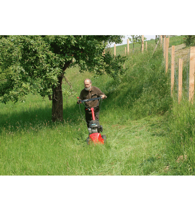 Vysoce kvalitní lišta ESM (Německo) má záběr téměř 120 cm, vysoký plošný výkon 2 500 m2/hod a velmi šetrný způsob střihu, který umožní rychlou regeneraci trávy. Spolu s převodovkou DSK-316 a motorem Honda je tento tradiční stroj na sečení vysoké trávy výkonným pomocníkem na dobře udržovaných loukách nebo horských pastvinách.