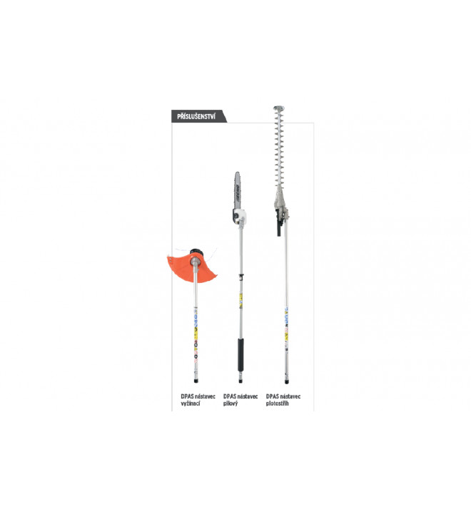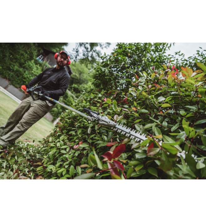 Využijte sílu profesionálního multifukčního systému. Tři snadno vyměnitelné nástavce pro celou řadu úloh – silnou pilu pro přesný řez vzdálených větví, nůžky na živé ploty pro čistý střih a křovinořez pro snadné a efektivní sečení.