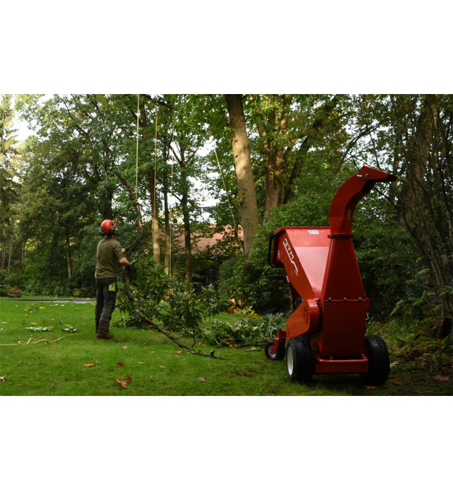 Pokud potřebujete drtič často převážet na různá místa, s drtičem GTS 1300 WDG s elektrickým pohonem si můžete ušetřit spoustu námahy. To ocení hlavně profesionálové z komunálních služeb, rizikového kácení stromů nebo třeba z údržby sadů, parků a zahrad. Pojezd je napájen baterií (2 x 12 V), která umožní stroji ujet na jedno nabití vzdálenost až 6 km na pevném a rovném povrchu nebo 2 km v měkkém či kopcovitém terénu. Pojezd má dvě rychlosti dopředu (3 a 6 km/h) a dvě dozadu (1,5 a 3 km/h). Řízení pomocí otočných kol je velmi snadné. Jelikož stroj zvládne svahy o sklonu až 15° není pro něj problém ani vyjet na korbu dodávky nebo přívěsu. Stroj si zachovává šířku pouhých 73 cm, takže projede všemi běžnými zahradními vrátky. Drtič GTM 1300 WDG si zachovává veškeré přednosti i technické řešení ostatních benzínových sourozenců, které je odlišují od své konkurence jak kvalitou, tak i rychlostí a snadností drcení dřevní hmoty. Základem je opět kovový buben se dvěma noži ze speciální oceli, které jsou otočné a dají se brousit. Drcené větve o průměru až 10 cm jsou pak sami natahovány do násypky a lehce a rychle rozdrceny. Výhozový tunel je otočný a má nastavitelný deflektor, takže snadno nastavíte proud dřevních štěpek tam, kam potřebujete.