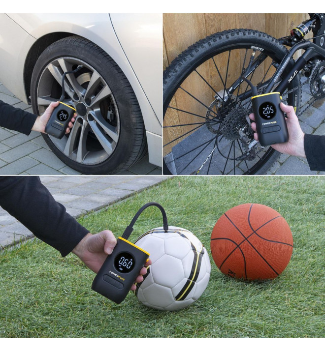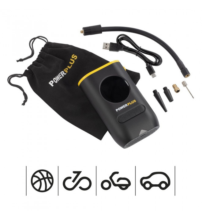 Tento 8V akumulátorový kompresor POWX1710 od PowerPlus produkuje 16 litrů vzduchu za minutu při maximálním tlaku 10,3 bar nebo 149 PSI. Se svými 3 tryskami a adaptérem pro automobilové pneumatiky je tato pumpa perfektní pro rychlé dofukování například míče, pneumatik na kole nebo auta či nafukovací