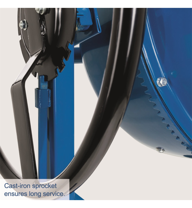 Stavební míchačka maltových směsí a betonu Scheppach MIX 180 je stroj vysoko překračující hobby třídu v této cenové kategorii a svými parametry a technickým zpracováním si nezadá s mnohem dražšími profesionálními stroji. Základem je objemný buben, jehož velikost 180 l je dostatečně velká i pro profesionální aplikace. Buben má design lopatek eliminující nepromíchané oblasti materiálu a velký průměr, aby se zachovala co největší kapacita i při jeho naklonění v pracovní poloze. Aby odolal velkému zatížení, má speciálně vyztužené dno, které je přesně roboticky navařeno na buben. Hřídel není uložena v tenkých, často jen 2 mm silných plechových profilech, jak je v této kategorii zvykem, ale je vedena na dvou ložiskách uložených v bezešvém pouzdru z oceli silné 5 mm. Toto řešení naprosto zásadně ovlivňuje životnost celého stroje. Silný motor nemá problém ani s rozběhem plné míchačky. Má unikátní konstrukci - jednak je to systém dvojitého chlazení, který eliminuje možnost přehřátí motoru a jednak je to systém jeho uložení v odolném pouzdru, které obsahuje labyrint kanálků, nedovolujících, aby se voda dostala k motoru. Spojení motoru a bubnu je s ohledem na bezpečnost pečlivě zakrytované. Veškeré elektrické obvody mají dvojitou izolaci, zásadní pro vaše bezpečí při práci. Ovládací kolo má velký průměr a bohaté rozmezí aretace bubnu. Míchačka se tak velmi snadno ovládá. Hlavní části stroje jsou složené a tak je stroj velmi jednoduché sestavit.