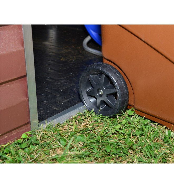 • Prakticky nerozbitné stěny i střecha z polykarbonátu s UV ochranou. Na rozdíl od běžných plastových domků z polyethylenu PE nikdy nezkřehnou a bez problémů odolají změnám teplot, přívalům sněhu nebo krupobití. Oproti plechovým domkům nikdy nereznou a stěnu nelze prakticky promáčknout či jinak poškodit. Není je potřeba ani natírat, či se bát plísně a hniloby jako u dřevěných domků.
