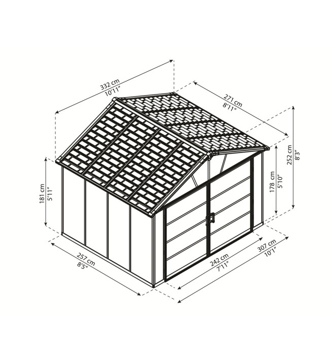 Palram Yukon 11' x 9' antracit, heavy duty prostorný domek s možností dalšího rozšíření (základní modul)