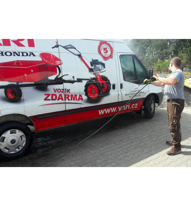 Jedná se o vysoce výkonnou tlakovou myčku s kvalitním čerpadlem. Vysoký tlak a průtok je vytvářený celokovovým čerpadlem s hliníkovým obalem, jehož hlavní výhodou je mnohem delší životnost než u elektrických čerpadel v porovnatelné třídě. Intenzitu čištění je možné řídit výběrem ze tří nerezových trysek, jejichž výměna je velmi snadná. Pro dávkování čisticího prostředku je myčka vybavena přisáváním a speciální pěnicí tryskou. Myčka je dále vybavena velkými pojezdovými koly, která usnadní manipulaci.
