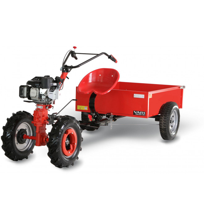Stavebnicový malotraktor VARI IV GLOBAL je spolehlivý pomocník pro zahrádkáře a farmáře hlavně při obdělávání půdy a přepravu nákladu. Pojezd malotraktoru obstarává převodová skříň DSK-317.1/S s dlouhou osou a tažnou nápravou TN-GLOBAL. Převod pohonu mezi motorem a převodovou skříní zajišťuje tříčelisťová odstředivá spojka s keramickým obložením, která se automaticky sepne vždy při přidání plynu na vodicích rukojetích.