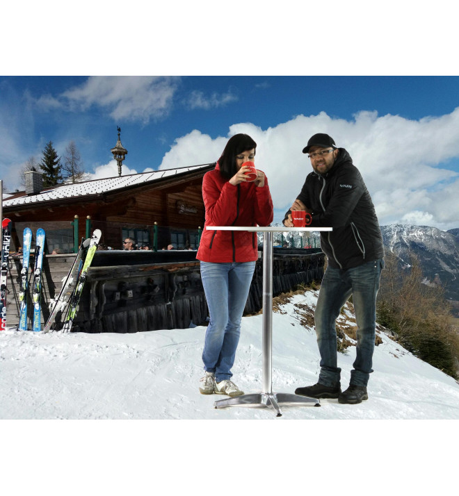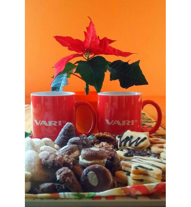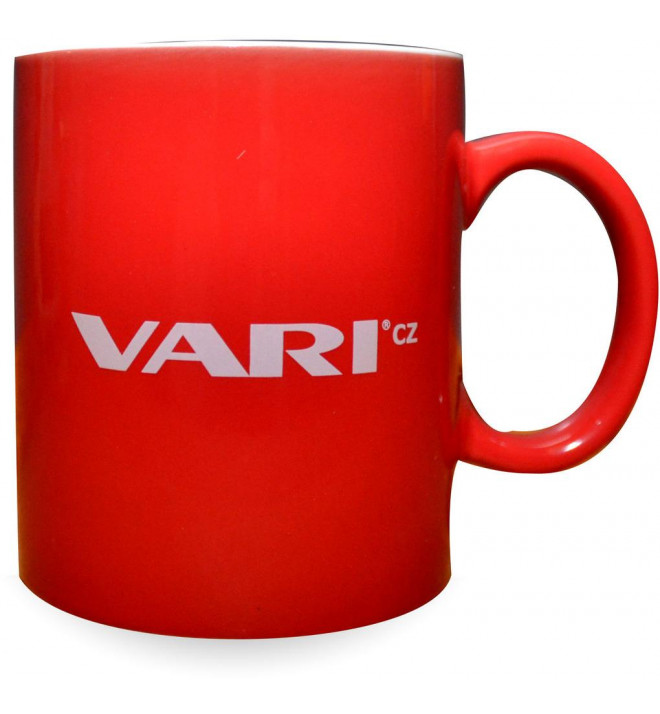 Červený keramický hrnek s uchem o objemu 310 ml.