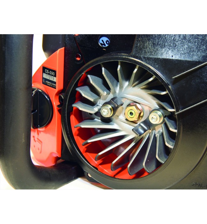 - Dávkovací pumpička paliva usnadňující studený start, který díky funkci EFFORTLESS START opravdu jednoduchý bez zpětných kopanců. Je zapuštěna v krytu pily, aby nedošlo k jejímu poškození při manipulaci s pilou. Pilu nastartujete při studeném startu na 3-4 natažení.
