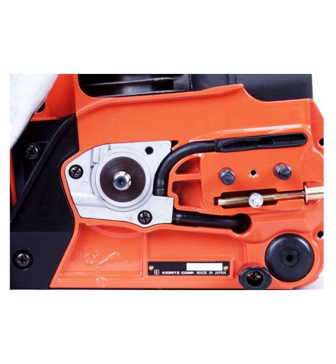 - Regulovatelný karburátor, který bývá opět výsadou pil vyšších řad umožňuje seřízení otáček motoru pro optimální výkon v závislosti na klimatických podmínkách a potřebách obsluhy.