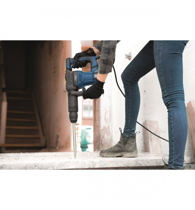Moderní bourací kladivo Scheppach AB 1500 X je z nové generace lehkých a kompaktních demoličních kladiv s vysokou silou úderu 20 J. Velkou výhodou nízké váhy je tedy snadná manipulace s kladivem i při práci v horizontální poloze. Kladivo je primárně určeno pro bourací a demoliční práce v soukromém sektoru, ale díky mnoha profesionálním komponentům zvládne i mnohem těžší nasazení. Štíhlý tvar těla stroje dovoluje pracovat i ve stísněných podmínkách. Síla úderu 20 J je dána vyspělým systémem úderníku a je dostatečná pro většinu bouracích prací, např. při stavbě či rekonstrukci domu nebo bytu. Důkladné těsnící prvky zase velmi dobře chrání před prachem a výrazně zvyšují životnost celého vnitřního ústrojí. Zvláště při delším použití jsou výrazným komfortním prvkem měkčené a protiskluzové zóny na rukojeti a její antivibrační odpružení. Upnutí systémem SDS Max zajistí snadnou, rychlou a pohodlnou výměnu nástroje. Stroj se standardně dodává s pevným plastovým kufrem, přídavnou otočnou rukojetí a dvěma sekáči.