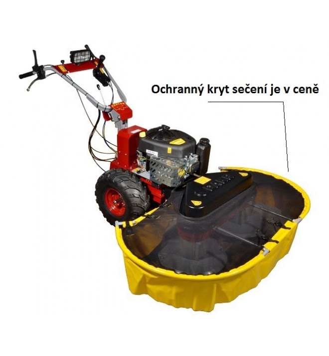 Ve spojení s pohonnou jednotkou FD-3 500 ccm vytváří nejvýkonnější kombinaci pro sečení velkých pozemků, jako jsou louky a pastviny. Dráhy nožů se překrývají a plocha je rovnoměrně posečena. Časování nožů je zajištěno převodovkou a řetězy. Pohonná jednotka má plynulou změnu (řazení) rychlosti vpřed i vzad. Použitá sada dvojmontážek předurčuje sestavu pro použití v podmáčených loukách. Ke stroji připojíte více než 20 dalších pracovních nástavců, které jsou vyobrazené v dolní části této stránky. Možnost připojit sedačku a při práci sedět, řada adaptérů pro přestavbu na mulčovač, obraceč a shrabovač, frézu a radlici na sníh, vozík, zametací kartáč, rotavátor a drtič větví.