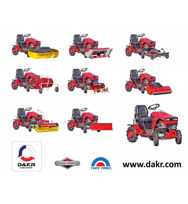 | Další pracovní funkce: | diskové sečení obracení, provzdušňování a shrabování cepákové i nožové mulčování frézování, odhrnování a zametání sněhu orba, bránování, kypření a hrobkování půdy, vyorávání brambor převážení nákladu, rozmetání soli a umělých hnojiv |