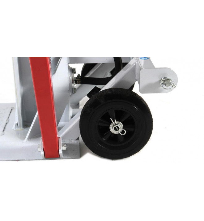 Velká kola, třetí transportní kolo u vodicích rukojetí, možnost snížení pístu a sklopení bočních opěr usnadňuje manipulaci se strojem a jeho skladování.