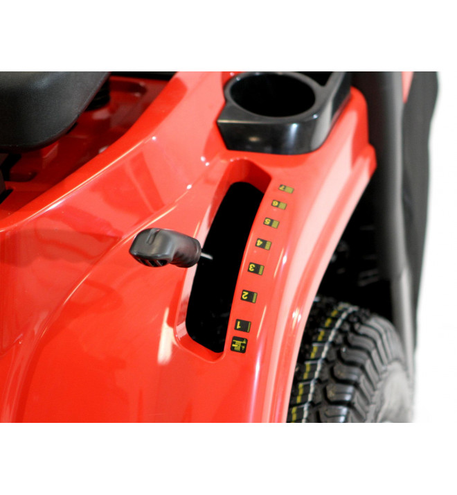 Šikmé žací ústrojí se dvěma noži je ovládáno elektromagnetickou spojkou a je nastavitelné v 7 polohách. Stroj má robustní nosný rám s integrovaným nárazníkem. Tento model je osazen kvalitním čtyřtaktním motorem Loncin o výkonu 16 HP.