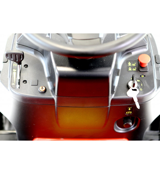 ,Travní traktor se šíří záběru 98 cm je osazen výkonným motorem GGP Loncin se zdvihovým objemem 452 cm3. Je vybaven hydrostatickou převodovkou a sběrným košem o objemu 240 l.